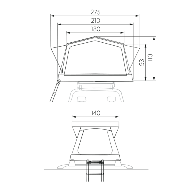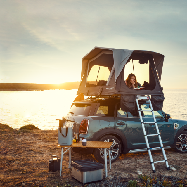 Mit der im Lieferumfang enthaltenen leistungsstarken 12-V-Pumpe lässt sich das Dometic TRT 140 AIR in wenigen Augenblicken aufrichten. Das vielseitige Dachzelt ist mit unserem robusten Einpunkt-Aufblassystem AIR Frame sowie einer integrierten Schaumstoffmatratze ausgestattet und bietet bis zu zwei Personen Platz und zuverlässigen Wetterschutz. Atmungsaktives Polycotton-Material und Netz-Fenster rundum reduzieren die Kondensation und bieten Komfort bei kühlem wie warmem Wetter.